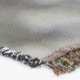 A quality printed throw has its advantages. This is a much finer weave throw than its loopier cousins, and though lighter, it is worth the investment for custom room accessorizing. The back is much prettier than the typical brown, and the fringe on the long sides very vivid, the selvage nicely done. Before photographing, I washed the throw in cold water, delicate, with a thicker woven throw the same size. On tumble dry low, this throw was dry in half the time as the other. This is a very practical quality if you use throws for furniture covers or to wrap up in frequently. The sleekness of the fabric makes it a great layer for accenting or protecting without the feeling of sitting on too much stuff. Perfect for napping or when you feel a light chill coming on. The color printing is beautiful and on this fabric, matched the design and color of my Photoshop image. This is an advantage for blending room fabrics and colors. The fringe on the short sides prints the colors from the design image and therefore varies from the side fringe. I streaked a white fractal line through the plaid pattern to give the illusion of weaving. This printed as crisp as an illusory thread, and put some white in the short side fringe, showing another advantage of print vs loomed- for artistic purposes, line lines, detail, and color integrity can be planned and preserved. My loomed throws have color limitations and more of a needlepoint texture. Print throws reproduce an exact image. The throw felt a little stiff straight out of the package, but this went away in the first delicate wash. Of course I searched the wash water for ink or bleeding and there was none.