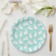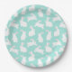 Adorable white bunnies with pink ears makes a fun pattern for spring and Easter parties. It's shown here on a paper party plate. It has a customisable aqua background colour, but you can choose any colour you prefer. Throw a party for Easter or a rabbit lover with this cute design!
