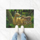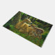 Two whitetail deer in the forest during spring time. A whitetail doe lies in the green grass next to a creek and licks her newborn fawn as sunlight streams through the trees to warm them. Realistic artwork created from an original oil painting by wildlife and equine artist Crista S. Forest.