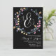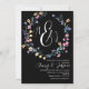 Spring Wild Flower Wreath Purple Black Wedding Invitation