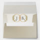 This design features lovely watercolor wildflowers and a linked leaf monogram on a cream background on the inside flap. Personalize the return address on the front and the initials for the monogram. Available with different colors for your wedding theme colors. Designed to coordinate with the Springtime Wildflowers Wedding Collection. To change details, click «Personalize». To move the text or change the text size, font, or color click «Click to customize further»
