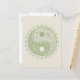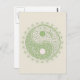 Yin Yang symbol with swirly vines, lady bugs & butterflies, in springtime green on sand beige, on t-shirts, sweats, cards, gifts.