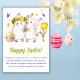 Celebrate the joy of Easter with our charming Holiday Greeting Card! Adorned with delightful watercolor illustrations of cute bunnies holding hands, a vibrant yellow tulip, an easter egg, and whimsical purple and yellow hearts, this card captures the spirit of the season. Send your warmest Easter wishes to friends and family with this adorable and heartwarming design. It's the perfect way to spread love and happiness during this special time of year!