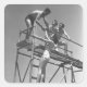 Two couples on springboard, (B&W), low angle view | George Marks | AssetID: 72417892