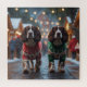 This festive design captures the joyful spirit of the holiday season, featuring an adorable dogs.Nestled in a winter wonderland, complete with a decorated Christmas tree, and beautifully wrapped presents. Snowflakes gently fall, adding a magical touch to the scene, while the vibrant colours of the holiday decorations create a warm and cheerful atmosphere.