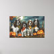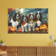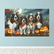 Unleash the spooky spirit with this eerie Halloween design featuring a pack of dogs under a dark, moonlit sky, surrounded by flying bats and glowing pumpkins. Perfect for those who love a touch of frightful fun with their furry friends!