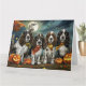 Unleash the spooky spirit with this eerie Halloween design featuring a pack of dogs under a dark, moonlit sky, surrounded by flying bats and glowing pumpkins. Perfect for those who love a touch of frightful fun with their furry friends!