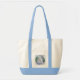 Love the durable cream colored canvas and navy blue contrasted handles. Perfect for carrying my laptop and papers.