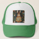 This adorable hat showcases a sweet rabbit nestled in a lush pink floral garden with fresh carrots, adding a playful springtime touch to your Easter wardrobe.