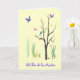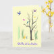 This Spanish Mother's Day card creates a colourful, whimsical spring mood. Birds are flying and are perched in the tree. Butterflies hover in the warm air. A duck waddles in the grass. There is even a tiny snail on the ground. The image is repeated inside. All text can be customised to suit your needs.