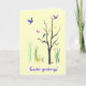 This Easter card creates a colourful, whimsical spring mood. Birds are flying and are perched in the tree. Butterflies hover in the warm air. A duck waddles in the grass. There is even a tiny snail on the ground. The image is repeated inside. All text can be customised to suit your needs.