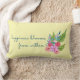 Springtime floral features a light, elegant floral design. The flowers and leaves have a soft, watercolor look and the script text reads 'happiness blooms from within' can be customised with your own phrase. On the back of the pillow there is a repeating pattern of a leaf. The background colour of the pillow can be customised.