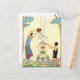 Springtime in France Art Deco postcard. Spring (Le Printemps) Art Deco Illustration by Georges Barbier. One of Georges Barbier’s lovely season illustrations. Spring features two young lovely women in art deco fashion dressing a little flower girl in rose petals and a flower crown in front of a streaming fountain. A great gift for fans of Georges Barbier, Art Deco, and Vintage illustration.