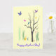 This Mother's Day card creates a colourful, whimsical spring mood. Birds are flying and are perched in the tree. Butterflies hover in the warm air. A duck waddles in the grass. There is even a tiny snail on the ground. The image is repeated inside. All text can be customised to suit your needs.