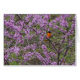 Nature animal photography, of an Oriole bird in a blossoming Redbud tree, and a greeting for Spring comprise this card.