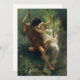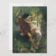 Springtime (Primavera) by Pierre Auguste Cot, oil on canvas 1873, is a French classical academic painting of two young people sitting in a swing in a sunny, spring forest landscape. Cot paints a sentimental image of flowering first love between a young man and woman which combines both modern realism and inspiration from classical antiquity, as in the girl’s gaze at her love and in the carefully modelled drapery. The smooth, academic realist technique captures effects of light and shadow that border on the photorealistic, tempered by the gentle curves of classical drawing. Springtime was commissioned as a type of companion piece to Cot’s other large painting of young lovers, The Storm, both of which became enormously famous in Europe and America.