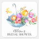 Pretty bridal shower favour seal featuring a watercolor tulips in a umbrella