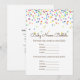 Sprinkle Baby Shower Game w answer back 5x7 size Invitation