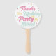 Unique, fun, colourful sprinkle mint chocolate doughnut party themed kids birthday party hand fan designed to look like a doughnut treat on a popsicle stick. Designed in fun colourful pink, yellow and teal with a confetti, sprinkles and polka dot design pattern. The back of the doughnut hand fan features a unique typographic message " Thanks for making my party so sweet!" Add uniqueness to your little ones birthday celebration with this unique idonut birthday party popsicle hand fan design. We have a wide selection of matching birthday items for this ice cream parlour doughnut birthday party theme.