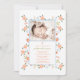 Tiny flowers, in an abstract border, frame your sweet baby's photo in the front and an overall pattern is repeated in the back in this delicate invitation. The featured cross can be dragged to any location, made larger or smaller or eliminated.