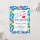 Ice cream cones themed baby shower invitation. The front features an assorted colourful ice cream cones pattern, your info, and the phrase in multi colours "Sprinkled with Love". The back of the invitations has a full ice cream cones pattern.