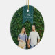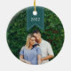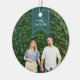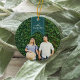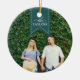 Personalise this elegant ceramic ornament with a photo on each side to commemorate a special year. Customise the front with your family name in white on a festive spruce green ribbon banner, and add the year to the back.
