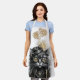 An intriguing looking pussy cat wearing a leather hat with steampunk brass on it. A golden feather tops the cock-eyed hat. This beautiful feline is wearing a golden or amber lensed monocle giving one eye a bronze tone, Around the cats neck hangs a brass trinket of some kind adding to the overall Steampunk attire. Brass cogs of the Victorian Technical era surround this intelligent looking feline.