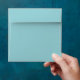 Use this custom envelope in place of the generic white envelopes that come standard with all of the cards and invitations in the Floral Damask I Wedding Set. This envelope is aqua blue with a damask pattern on the inside. You can order this wedding blank or add your address on the product order page. The envelop is 5 1/2" x 5 1/2" and fits the square invitations.