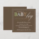 This invitation features the words "baby boy" in pretty pastel colours against a brown background. Baby shower details sit below.