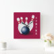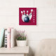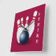 Square bowling pin clock with ball knocking down pins image and strike textAdd your own image, text, digital photo, logo or colour