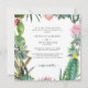 Tropical Cactus Square Wedding Invitation. Bride Parents listed.