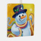 This jolly snowman is about to decorate his tree with colourful tinsel.