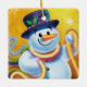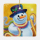 Square gold Christmas tree decoration Snowman and tinsel. golds.
