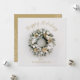 Square business holiday greeting cards feature a beautiful snow flocked pine wreath decorated with white and gold Christmas tree ornaments and flowers on the front along with a greeting and company name. Personalised message on the back on a green background. ***SQUARE SIZE REQUIRES EXTRA POSTAGE - mail in 5" x 7" envelope for regular rate postage. Be sure to double-check your order before adding it to your cart as what you see on the screen is what will be printed. The Live Design Service can help you with your design layout if needed.