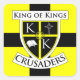 A cool 1.5"x1.5" King of Kings Crusaders sticker is perfect for showing your school spirit on just about anything.