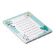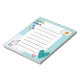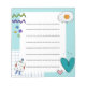 Cute kawaii cartoon doodle design for taking notes. Mainly a teal or turquoise with white colour scheme with a fried egg, some lovely hearts and a whimsical flower pot. With dotted lines for your text. Use it as a grocery shopping list, to do list or any other note you want to jot down.