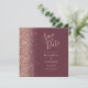 Square Dark Burgundy Rose Gold Save the Date Announcement