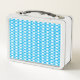 This is a standard metal lunchbox that appears to work just fine. We designed this box ourselves with an uploaded photo and custom text on the front and back. It looks absolutely beautiful except the front of the lunchbox is not centered like it shows in the photo. The print borders don't align with the inset flat part of the box where the preview photo online showed it perfectly centered in there. The back looks nice and centered though.