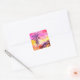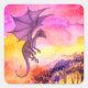 Square Dragon Sticker. Watercolor print. Bright colours, pinks, yellow, orange, purple. Different shape stickers available.