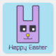 A purple Easter Bunny made of squares and straight lines with rounded corners.
