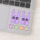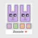 Two cute purple Easter Bunnies made of squares and straight lines with rounded corners and four colourful square eggs.