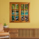 Enhance any decor with this picturesque wooden window illusion poster. The view from your faux window features a calming lake, lagoon on a sunny day. The poster was made in high definition (300 dpi) and at 36" x36" so it can be made larger without losing the image quality and will print out even better if you choose a smaller print. Size options may include 24" x 24", 30" x 30", 20" x 20" or what ever square size works best for you.