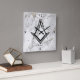 If you're looking for personalised, unique masonic gifts, this modern, square freemason wall clock can be just what you're looking for! Whether you need something special for an individual brother or need masonic lodge gifts for the Annual Installation of Officers or another special celebration, these masonic clocks will class up any space. The unique template depicts a black square and compass symbol over faux black and white marble veined with gold. Add your own custom text, or simply delete to leave blank. In addition to the white marble, there is also a black marble texture, along with other square and compass logo options (such as silver, white and gold... with or without the "G"). Uncover these additional design options from your desktop computer. Category: masonic wall clocks; personalised freemason gifts; square and compass clocks. Colours: black and white marble theme.