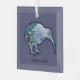 Christmas Square Glass Ornament with a Kiwi Bird and a personal message on the front, a great Christmas decoration for the Xmas Tree. This decoration features a message, in this example it reads "Christmas 2023" but which can be personalised, and replaced with words of your choice. On the front is also the native NZ Kiwi bird in a shimmery, sparkly rainbow, Pāua-colour, against a gorgeous dusky purple.