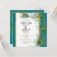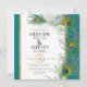 Peacock feathers are such a timeless classic and elegant motif for weddings. Their iridescent shimmer adds sophistication and beauty to any celebration! This version has a background of deep teal blue that can be changed out for any colour you would like to match your wedding colours. Just click "customise it" and look for the "Printed background colour" option. These feathers were hand painted in oil pastel by Audrey Jeanne Roberts, capturing their delicate swirling feathers and adding a bit glitz and glam with gold glitter accents (faux, graphically designed). The typography text layout is easy to change out for your own information using the template fields provided. Copyright, all rights reserved.