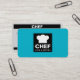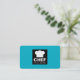 A stylish business card template designed for a cafe, restaurant or coffee shop in mind. The card has a 1.3in square black panel on the front containing a generic chef's hat logo/symbol with the company name and type of business beneath. The reverse side of the card has a black header and footer layout with the company name repeated in the header and the business type beneath. The central section has the address at the top with opening times in the centre, with telephone number beneath. The black footer contains the email and website addresses. This template is designed to be easy to customise but obviously your details will be different and may require additional customisation e.g. if names are longer etc. The background colours can also be changed.