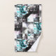 Square mosaic of messy textures in silver to cyan bath towel set