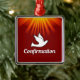 Square Ornament, Confimrtion, Dove on Red, Metal Tree Decoration