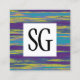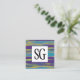 A square business card template with initials placed inside a square panel. This version also has a background image. The initials are in the Integrity bold font. Name and profession/job title along with telephone, email and website address in black on the reverse side on a white background, using variations of the Matt Antique font.
