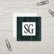 A square business card template with initials placed inside a square panel. This version also has a background image. The initials are in the Integrity bold font. Name and profession/job title along with telephone, email and website address in black on the reverse side on a white background, using variations of the Matt Antique font.